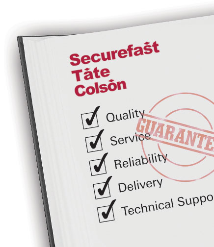To support the high quality engineering, durability and quality performance of the products sold, Securefast plc give a statutory 1 year guarantee against defects due to faulty manufacturing, workmanship or defective material.